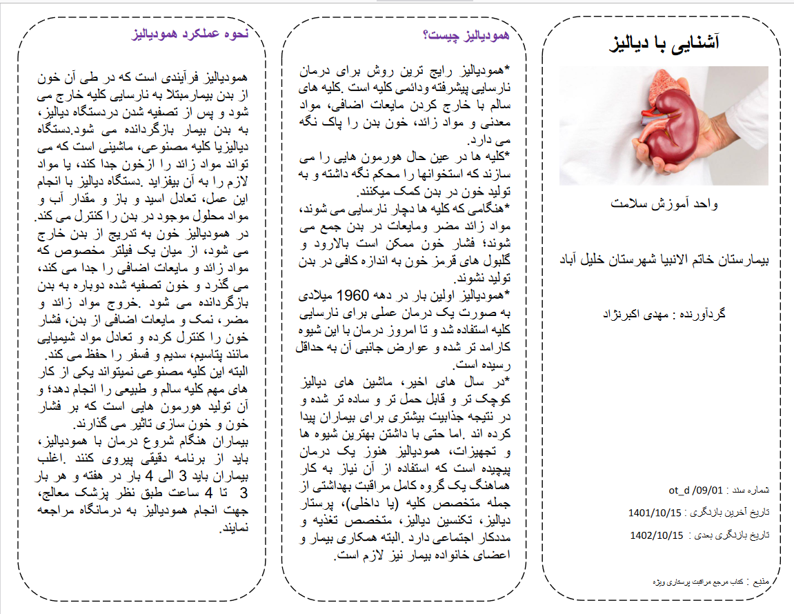 بدون مجموعه 01 تیر 1402 بازدید: 129 امتیاز: ( 0 Rating ) آشنایی با دیالیز امتیاز کاربران لطفا رای دهید رای 1 رای 2 رای 3 رای 4 رای 5 دانلود پمفلت قبلی بعدی