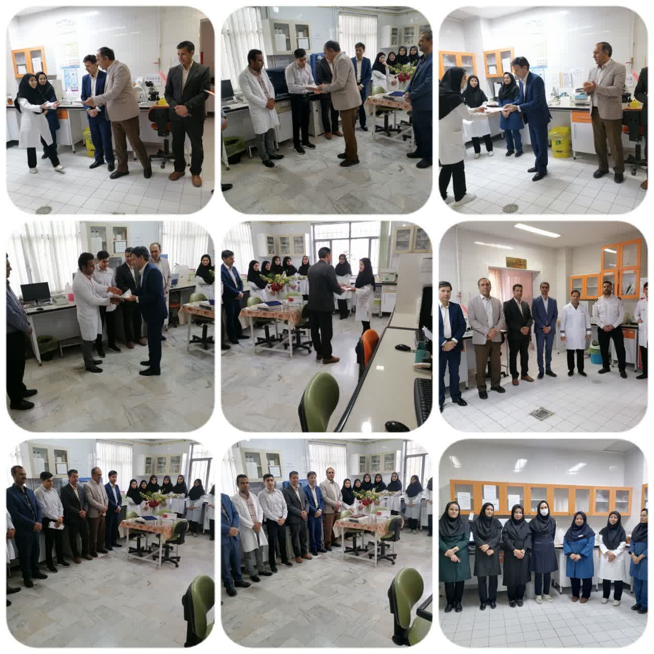 توسط مدیریت محترم شبکه، معاونت محترم بهداشتی حراست محترم وکارشناسان باحضوردرآزمایشگاه مرکزبهداشت و آزمایشگاه بیمارستان خاتم الانبیاء خلیل آباد ازهمکاران این حوزه با اهداءلوح تقدیربعمل آمد.