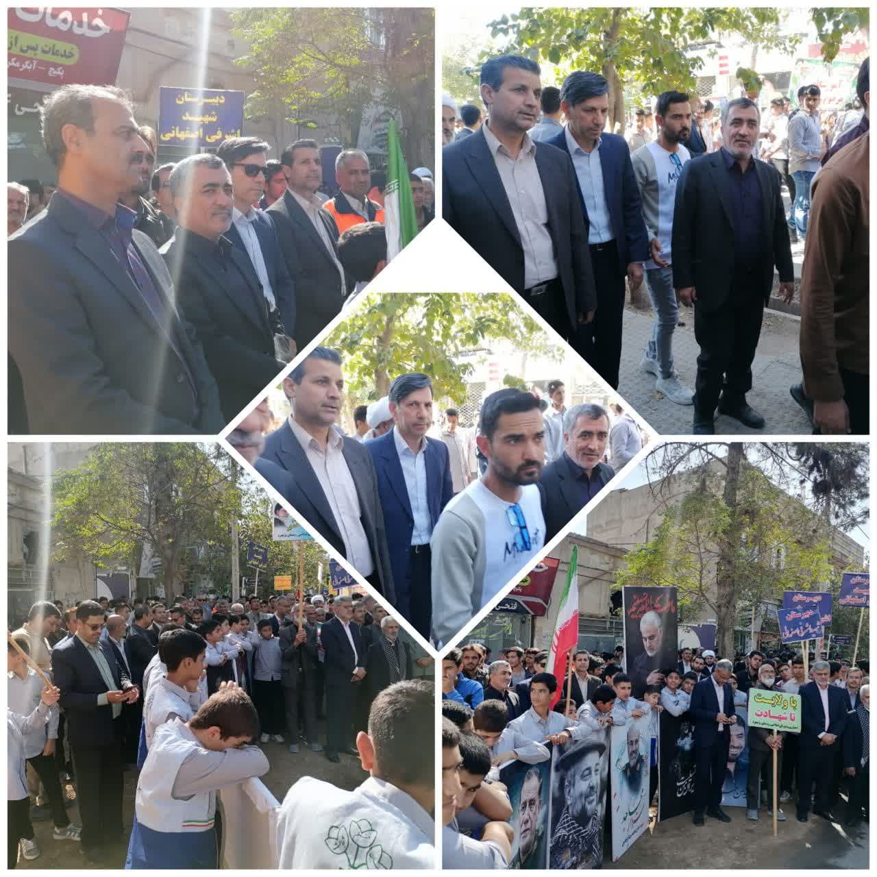 مدیریت شبکه، معاونت، حراست همکاران ستادی شبکه بهداشت و درمان شهرستان خلیل آباد نیز با حضور در این راهپیمایی حماسی جنایات رژیم صهیونسیتی را محکوم و یاد خاطره تسخیر لانه جاسوسی آمریکا در ۱۳ آبان ۱۳۵۸ توسط دانشجویان پیرو خط امام خمینی (ره) را گرامی داشتند.